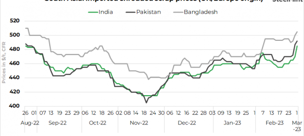- UK-origin shredded scrap prices were at $505/t CFR Chittagong, up marginally by $5/t d-o-d.