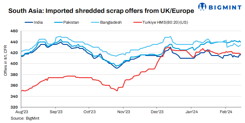Pakistan: In Pakistan, market sentiments remained mixed due to recent elections and subsequent payment delays, compounded by longer lead times in material arrival from Europe/UK and UAE’s recent export duty announcement. These challenges have led Pakistani buyers to face limited availability of scraps, resulting in slower purchasing activity.
