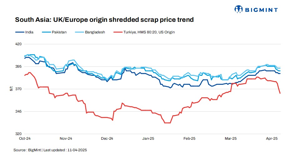 South Asia’s imported scrap markets remained largely quiet this week, with trading sentiment weighed down by post-Eid sluggishness, global market uncertainty, and persistent bid-offer mismatches. Notably, UK-origin shredded scrap offers to India, Pakistan, and Bangladesh remained unchanged d-o-d. Meanwhile, US-origin bulk HMS 80:20 offers to Turkiye dropped by $5/tonne (t) d-o-d.