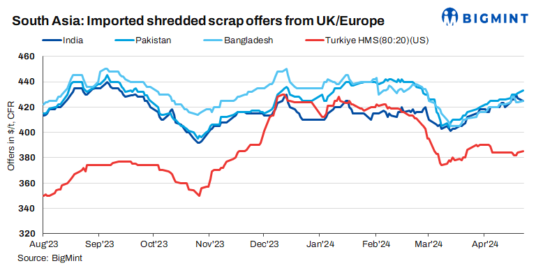 In the near term, imported ferrous scrap offers are expected to stay firm, driven by a resolute stance from sellers amid sluggish collection rates in their respective domestic markets. In India, we anticipate increased bookings, albeit at a pace aligned with immediate requirements, driven by restocking demand ahead of the monsoon season and constrained domestic supply. Pakistani buyers may adopt a wait-and-watch approach due to sluggish demand in the downstream steel sector. Bangladeshi buyers are likely to continue booking amidst improved demand for finished steel, although challenges with LC approvals may persist.