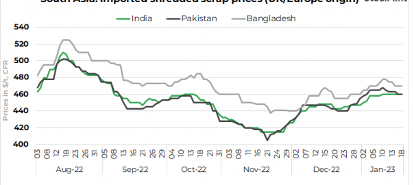 • UK-origin shredded scrap prices stand at $470/t CFR Chittagong, stable d-o-d.