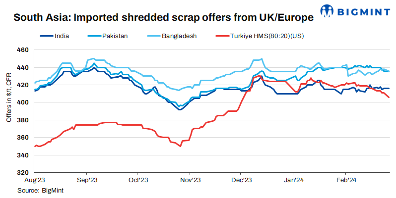 In the short term, imported scrap offers are expected to undergo minor adjustments, influenced by Turkiye’s recent significant price decline, which often sets the tone for South Asian markets. Nonetheless, European offers may remain steady due to elevated collection costs and rising freight rates, particularly amidst the ongoing Red Sea crisis.