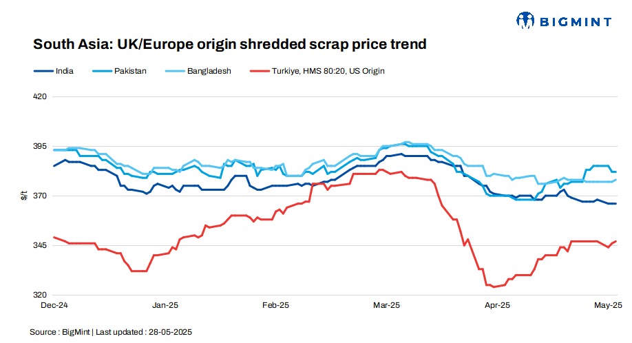 India: India’s imported scrap market remained lacklustre due to weak finished steel demand, tight margins, and growing preference for sponge iron and pellets. Mills leaned towards short-transit cargoes given the uncertainty over the coming two months and the onset of the monsoon.