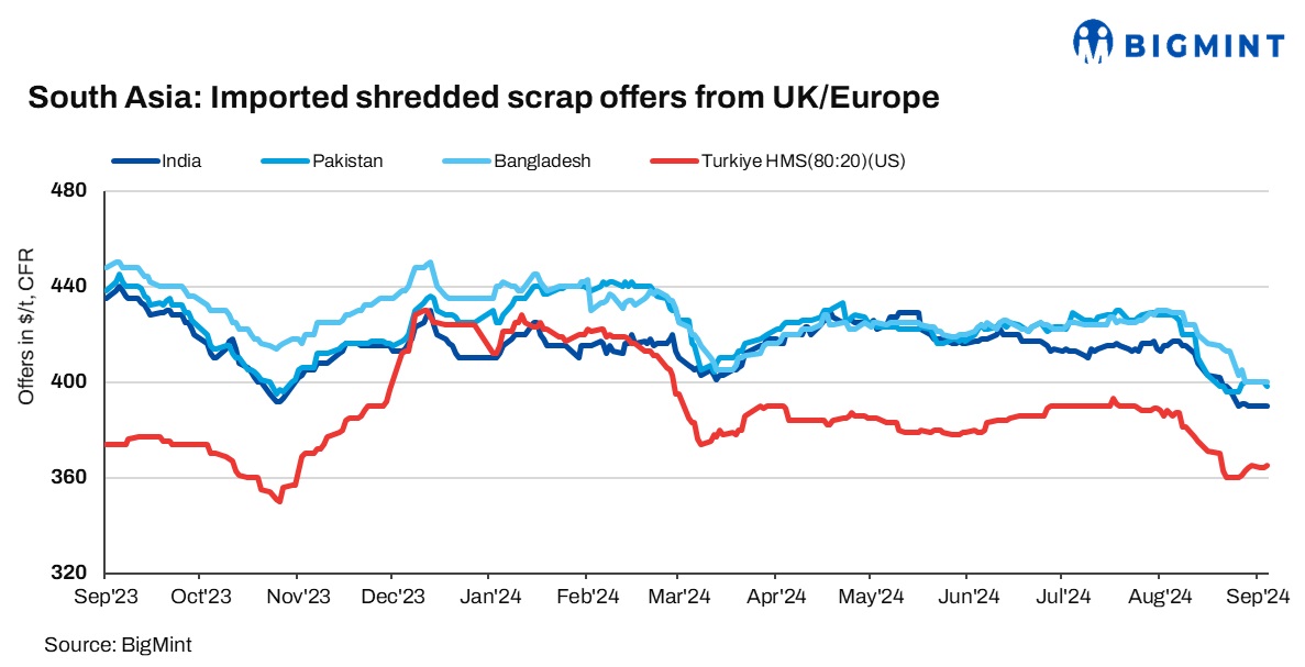 - Bangladesh: UK-origin shredded prices remained unchanged d-o-d at $400/t CFR Chattogram.