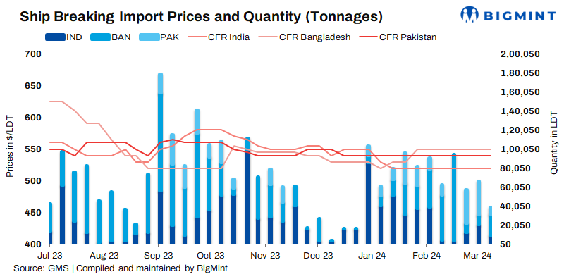 However, despite recent activity, a gradual sense of market fatigue is emerging as many buyers have already maximised their L/C limits. These recyclers may have fulfilled their demand just in time for the upcoming pre-monsoon season, historically marked by increased activity in sub-continent recycling destinations.