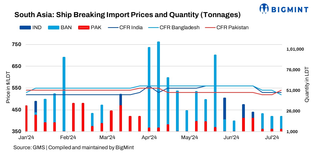 Conversely, Bangladesh’s ship recycling market faced severe disruptions due to violent unrest, communication blackouts, and a challenging monsoon season. These factors led to a significant drop in local prices and stalled trading, leaving the market subdued amid ongoing crises.