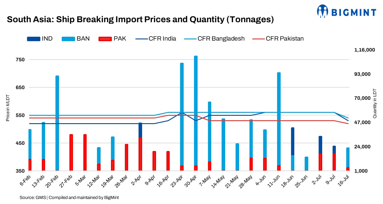 Despite these adversities, Gadani saw an unexpected arrival of a sub-4,000 LDT container, defying the prevailing negative sentiment. Nonetheless, vessel offerings from Gadani recyclers remain subdued, making it the lowest-priced destination compared to competing sub-continental markets. As the monsoon season continues, a quiet third quarter (Q3) is likely for Gadani, mirroring trends in Bangladesh. With last year’s tonnage largely consumed and freight rates expected to dip in Q4, Pakistani recyclers remain cautious, waiting for the right opportunities to secure deals at bargain prices.