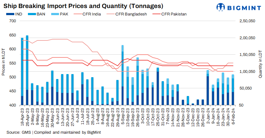 Recyclers are securing L/C approvals, leading to varied offers in the same region. Steel plate prices stabilised amidst geopolitical tensions, including U.S. retaliatory strikes in Syria and Iraq. Frequent attacks on merchant vessels in the Red Sea kept freight rates high, limiting recycling prospects. With the quieter Chinese New Year approaching, Q1 2024 may see subdued activity in global ship recycling markets. Regulatory updates include HKC-certified Indian yards gaining EU approval and Norwegian funding for facility upgrades in Bangladesh.