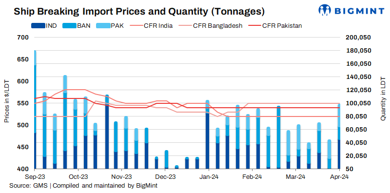 In Bangladesh, buyers are encountering a scarcity of high-quality tonnage, worsened by a slowdown during Ramadan. Additionally, geopolitical tensions arising initially from Ukraine and later from the Red Sea have disrupted shipping lines, impacting global economies and fuelling inflation. These tensions have also hampered ship recyclers, notably at a time when letters of credit (LC) restrictions were starting to ease through International Monetary Fund (IMF) loans to Pakistan and Bangladesh.