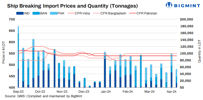 The South Asian ship recycling industry saw mixed trends. In India, Alang recyclers remained resilient amidst upcoming elections, engaging in high-priced transactions. Pakistan’s market was subdued due to the Eid holidays, but activity picked up later. Bangladesh experienced a slowdown during Eid observance, with a gradual return of buyers expected.