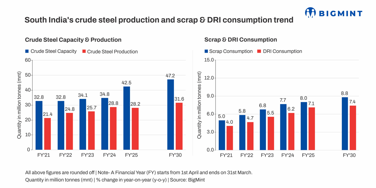 Between FY’20 and FY’24, Tamil Nadu’s crude steel output grew from 2.5 million tonnes (mnt) to 4 mnt-a 60% rise. This growth trajectory is expected to continue, with production projected to touch 4.6 mnt by FY30, reflecting rising infrastructure and construction activity across the region. As steelmaking capacity expands, so does the appetite for raw materials, particularly ferrous scrap. Tamil Nadu’s scrap consumption climbed from 1.9 mnt in FY20 to 2.8 mnt in FY24, registering a 47% increase. The demand is concentrated in electric arc furnace (EAF) and induction furnace (IF) units that rely heavily on consistent scrap availability to maintain melting operations. Projections indicate that scrap requirements could reach 3.3 mnt by FY’30.