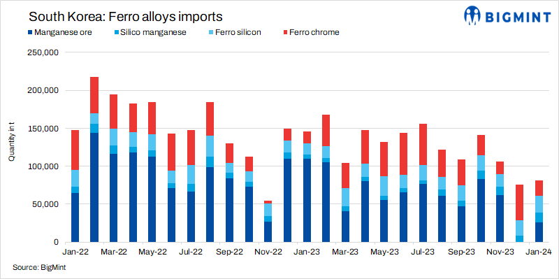 South Korea: Ferro alloys imports shows mixed trends m-o-m in Jan’24
