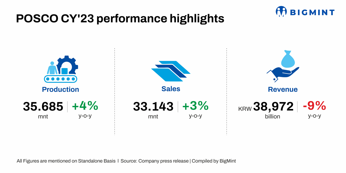 South Korean steel giant, POSCO, released its CY’23 results on 31 January 2024. The company’s annual crude steel production and sales volume showed growth y-o-y.