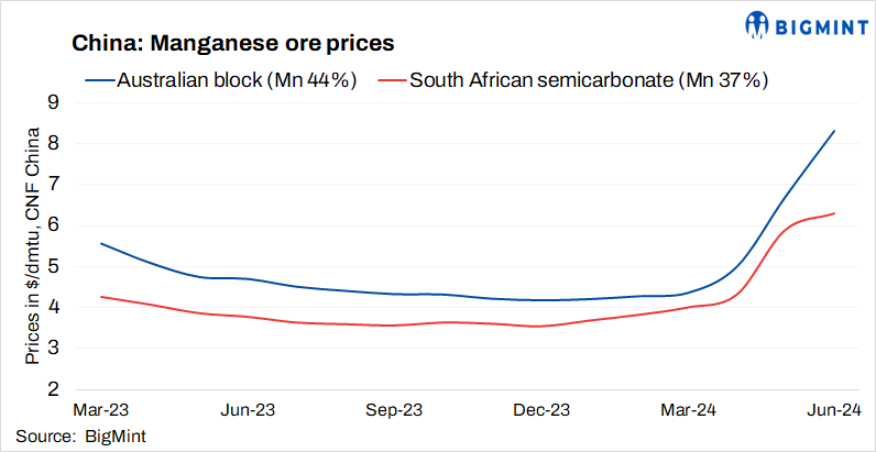 South32: Manganese ore prices increase for Jul’24