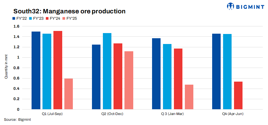 Over January-March, production from the primary concentrator at Australia Manganese was paused after having established stockpiles ahead of the wet season. However, the company’s FY’25 production guidance stayed unchanged at 1 million wmt, with the restart of the primary concentrator expected during the April-June quarter, the report said, adding that export sales are on track to recommence in May.