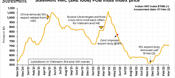 Meanwhile, buyers’ inclination is still towards domestic products. The Vietnamese steel major, Hoa Phat, posted an 18.16% m-o-m increase in its sales of construction steel, including hot rolled coils and billets. The producer has sold about 0.475 mnt of steel in February 2023, as against 0.402 mnt a month ago, as per a company press release.