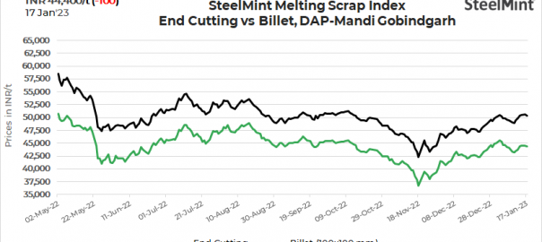 SteelMint’s domestic scrap index remained almost stable as the market fluctuated in the range of INR 200/t today. Meanwhile, end-user demand for steel continued to remain limited. SteelMint’s domestic steel scrap (end-cutting) index decreased by INR 100/tonne (t) to INR 44,400/t DAP Mandi Gobindgarh on 17 January, 2023.