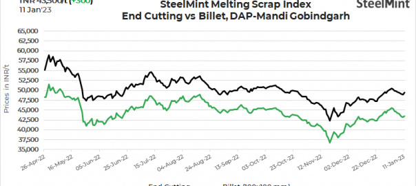 SteelMint’s domestic steel scrap (end-cutting) index rose by INR 300/tonne (t) to INR 43,500/t DAP Mandi Gobindgarh on 11 January, 2022.