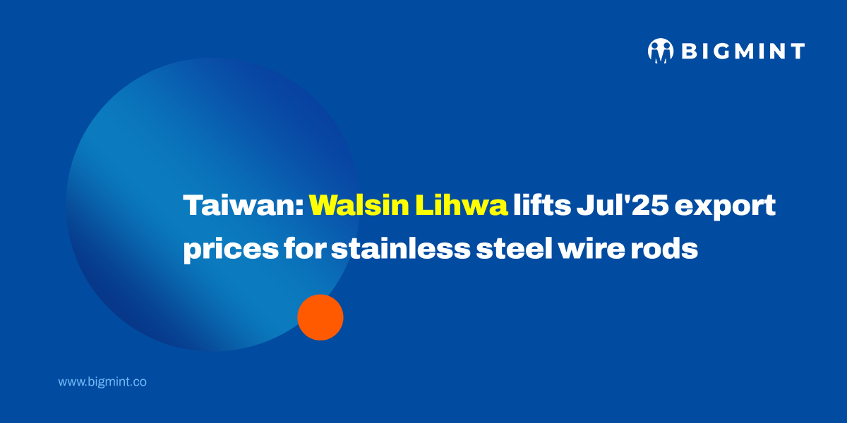 Taiwan’s Walsin Lihwa, a stainless steel wire manufacturer, has raised Jul’25 export prices of 300-series stainless steel wire rods by $30/t, marking a second consecutive monthly increase due to currency appreciation. Domestic prices of 200, 300, and 400 series remained unchanged. Although raw material costs for molybdenum and copper increased, downward pressure from the increasing currency rate limited the price hike.