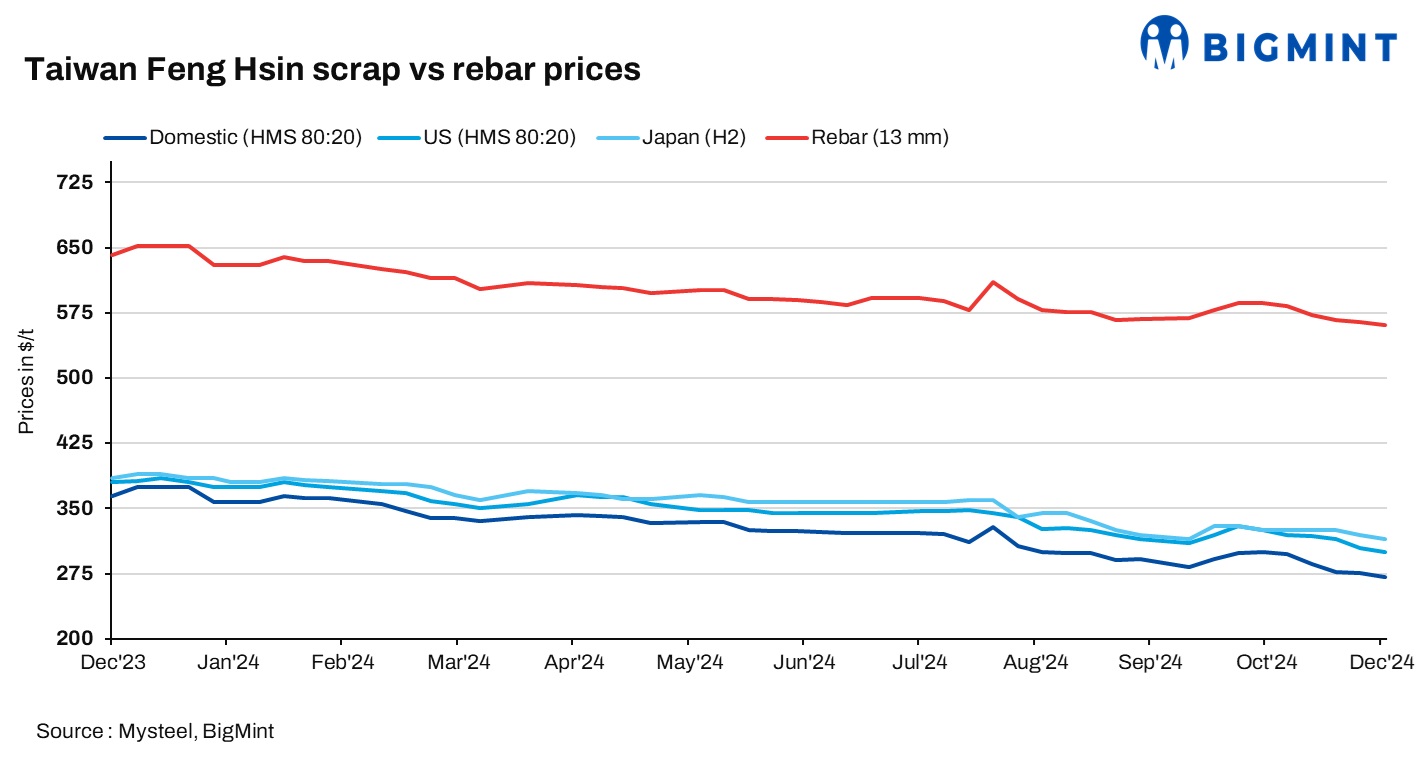 Feng Hsin’s new price cut for scrap purchases was mainly due to the continuous weakness in the prices of global scrap delivered to Taiwan over the past week, Mysteel Global was told.