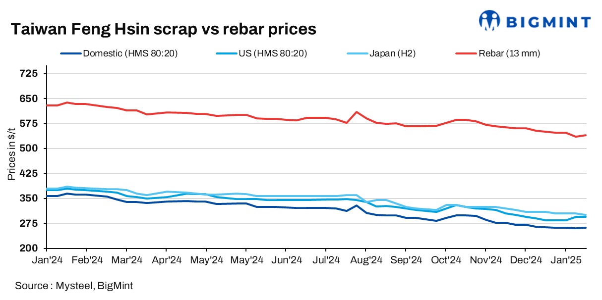 Taiwan’s Feng Hsin holds rebar, scrap prices