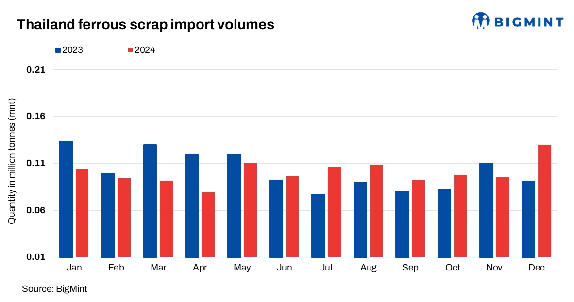 Australia scrap exports to Thailand CY’24 Thailand imports Japan scrap exports to Thailand scrap imports Thailand December 2024 Thailand ferrous scrap import data Thailand ferrous scrap imports Thailand scrap import month-on-month increase. Thailand scrap import statistics Thailand scrap import year-on-year comparison Thailand scrap imports 2024 Thailand scrap market Thailand scrap market trends Thailand: Ferrous scrap imports fall by 2% y-o-y in CY’24 US scrap exports to Thailand