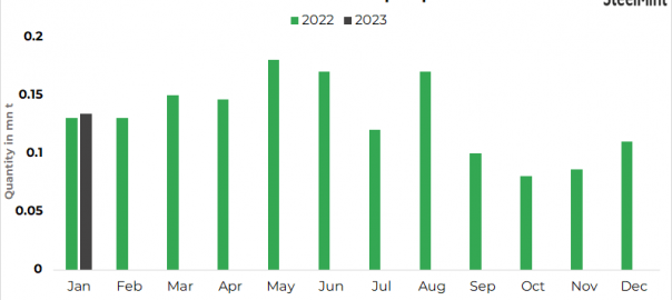 • However, scrap imports by the country dropped marginally by 3% y-o-y compared to 134,352 t in Jan’22.