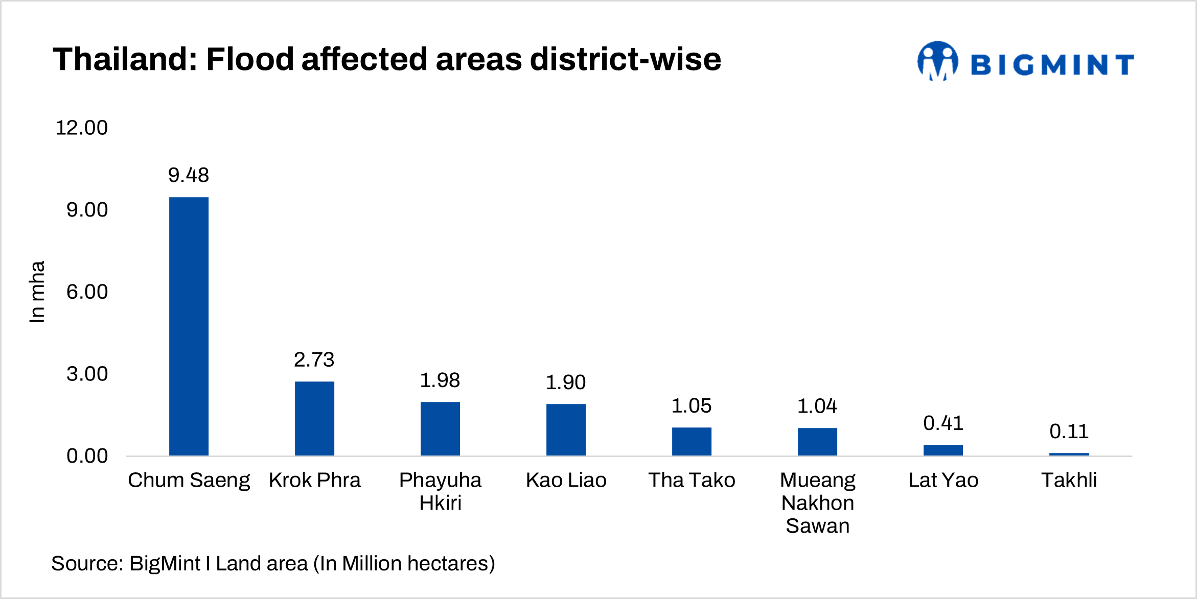 Severe flooding in Thailand’s Central region has disrupted rice cultivation and damaged Hom Mali crops across nine provinces. Harvest losses in the northeast have driven Hom Mali prices up by $20/t, while central areas face delays in planting the next crop due to water releases from the Chao Phraya Dam and persistent high river levels.