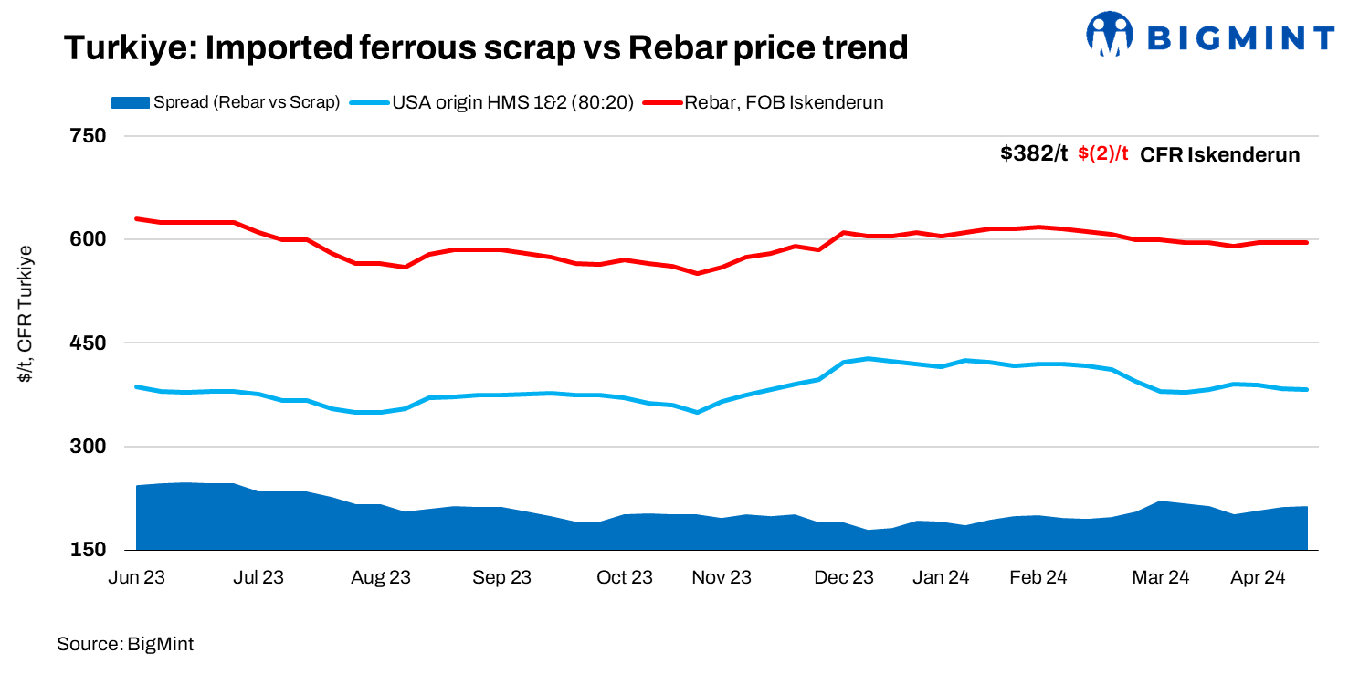 Imported ferrous scrap prices in Turkiye remained largely range-bound, with a slight drop of $2/t w-o-w reflecting a prevailing bearish near-term sentiment within the market. Turkish steel producers remained sidelined from the imported scrap market due to sluggish demand for longs and semis both locally and internationally.