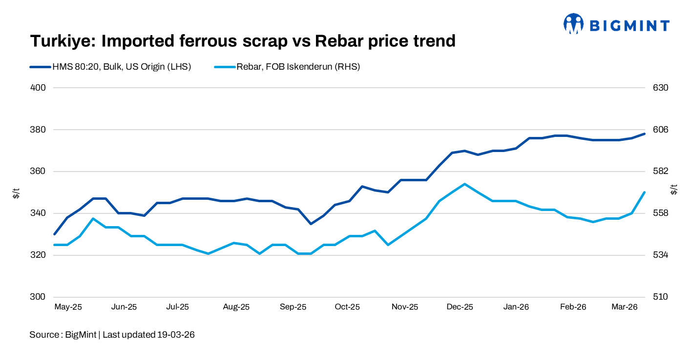 Turkish deep-sea imported scrap prices increased w-o-w, with HMS 80:20 assessed at around $378-380/t CFR. Trading activity remained muted during the week, with no fresh deals reported, as elevated freight rates and uncertain market conditions discouraged both buyers and sellers from entering the market.