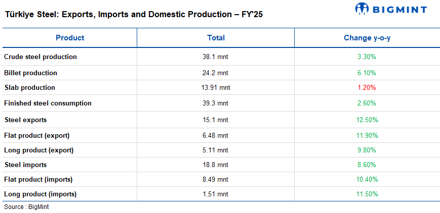 For 2026, the Turkish steel industry has set export targets of 20 mnt in volume and $17 billion in value from 19.43 mnt and $16.5 billion, respectively, in 2025.