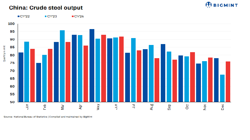 China’s total crude steel production declined by 1.7% y-o-y, to 1.005 billion tonnes (bnt) in 2024.