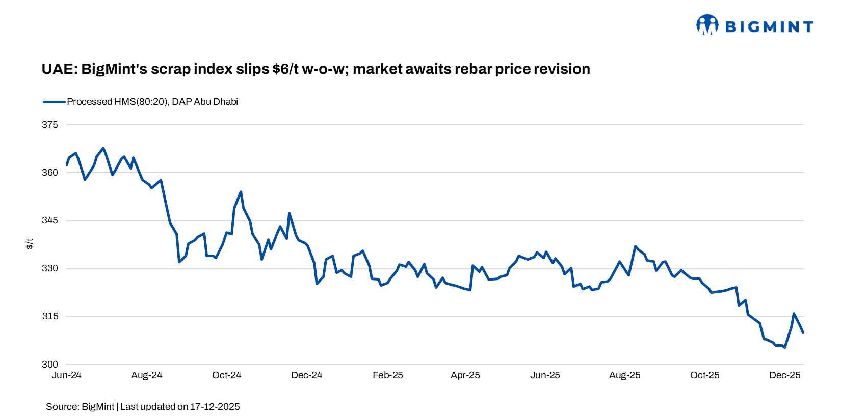 Market participants noted that processed local scrap prices in the UAE remain largely range-bound, as subdued buying activity persists, with mills focused on keeping year-end inventories to a minimum.