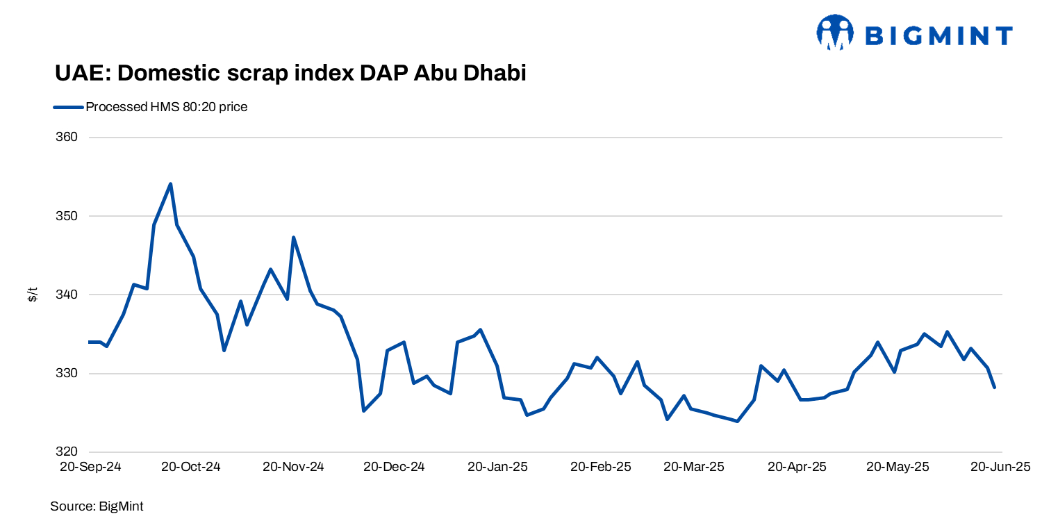 A Dubai-based scrap supplier noted, “Mills are clearly trying to push prices down, citing regional tensions.” As they expect the local steel prices to decline in the near term, they have been calling for price cuts for raw materials.