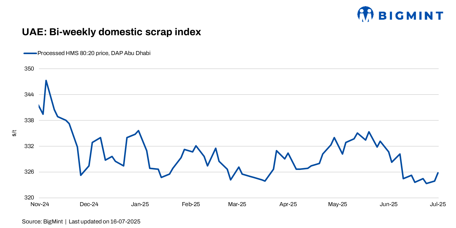 UAE domestic scrap prices might rise slightly in the coming week on steady local demand and limited availability. Sellers lifted offers by AED 10-20/t, supported by active restocking in nearby markets like Pakistan.