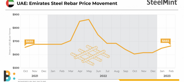 Emirates Steel, one of the leading steel producers in the UAE, has increased rebars offers by $17/t (AED 62/t) m-o-m for Feb’23 deliveries, sources informed. Revised offers stand at $665/t exw (AED 2,442/t) compared to $648/t (AED 2,380/t) last month. A hike in scrap offers and rising global rebar prices have supported the price hike.