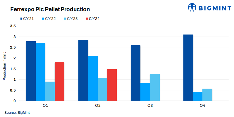 - Meanwhile, production of Ferrexpo DR pellets (FDP) resumed during Q2CY’24