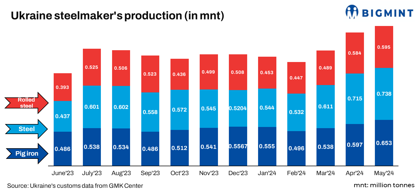 Ukrainian steelmakers has released its production figures for May’24.