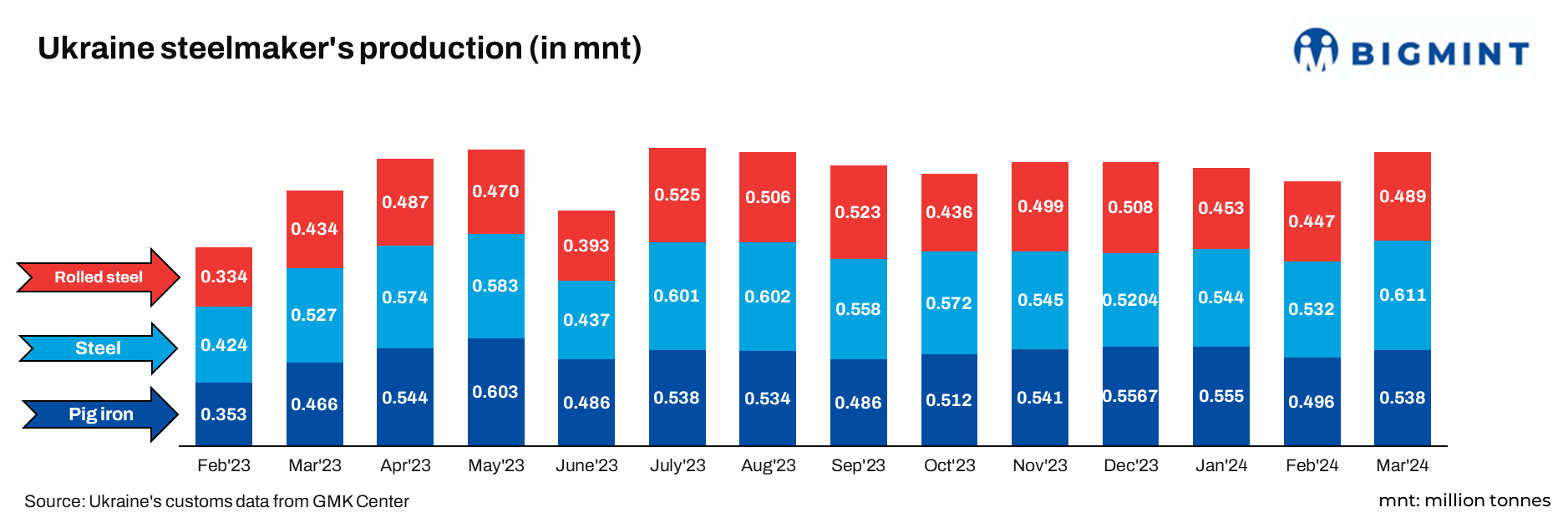 Ukrainian steelmakers have released its production figures for Mar’24.
