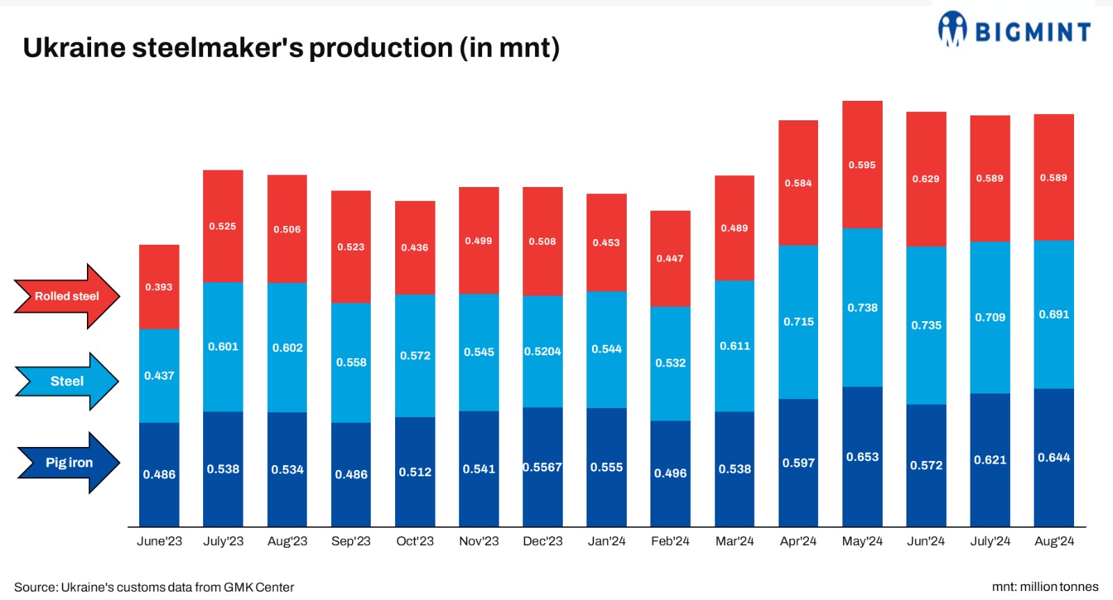 Ukrainian steelmakers have released its production figures for Aug’24.