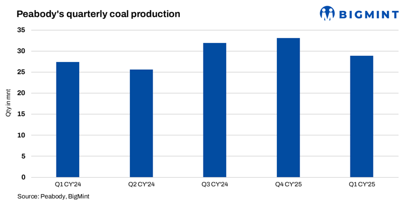 Peabody Energy sold a total of 28.9 million tonnes (mnt) of coal in the first quarter of 2025 (Q1CY’25), up from 27.4 mnt in the same quarter last year.
