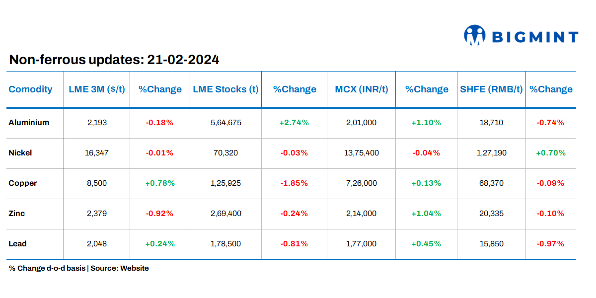 Base metals prices on the London Metal Exchange (LME) witnessed mix trends as of last closing. Simultaneously, LME warehouse stocks majorly witness outflows barring aluminium.