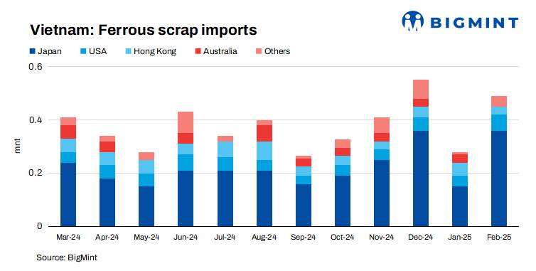 Vietnam: Ferrous scrap imports rise significant 77% m-o-m in Feb’25