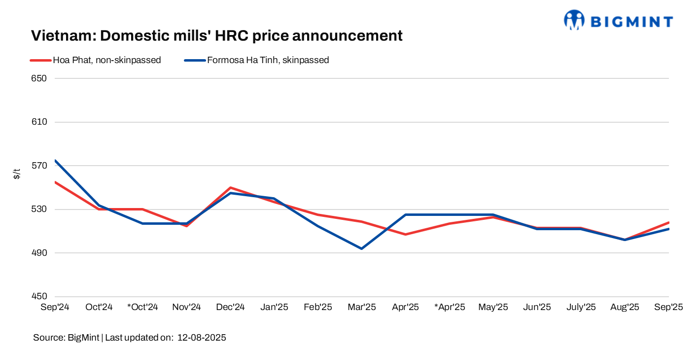 Vietnam: FHS increases HRC list prices by $10/t for Sep’25 sales