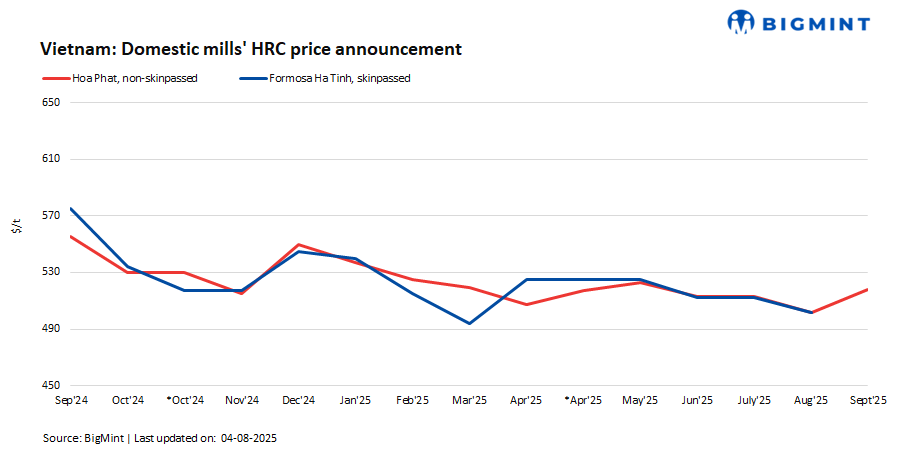 Vietnam: Hoa Phat increases HRC prices by $16/t m-o-m for Sep’25 sales