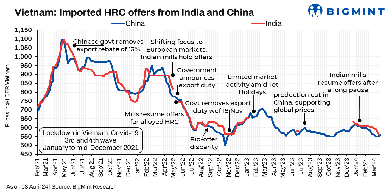 Vietnam: Imported Chinese HRC offers rise w-o-w following hike in steel futures