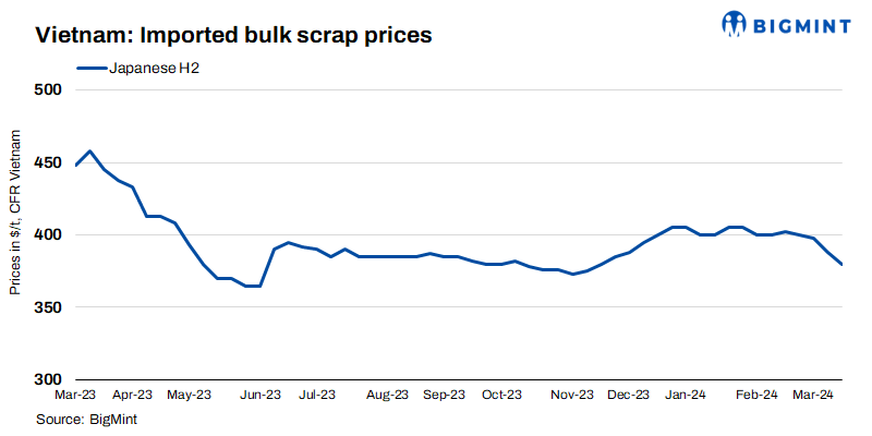 Vietnamese imported scrap offers witnessed a downturn this week after the conclusion of the recent Japanese H2 scrap Kanto tender. Moreover, subdued demand in the domestic market, coupled with bid-offer disparity, have led buyers to adopt a cautious stance of observation.
