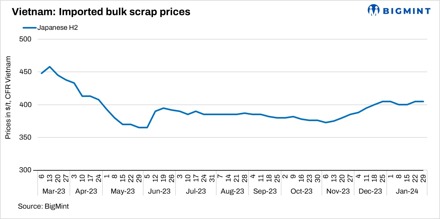 Outlook: The import of scrap into Vietnam is expected to remain subdued during the upcoming Tet holidays, primarily due to the absence of buyers. Traders anticipate that domestic prices are likely to find support in the short term.