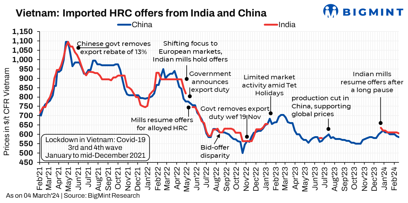 Vietnam: Imported HRC offers decline w-o-w amid competitive domestic prices