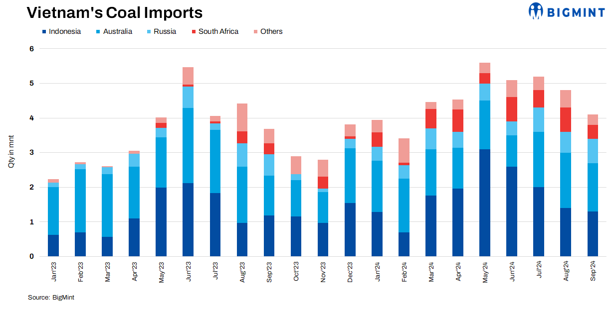 Vietnam’s bulk coal imports fall in Sep’24; Australia, Indonesia emerge as top suppliers